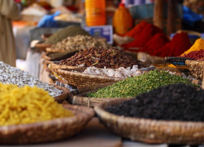 Stadsrundturen börjar vid den mäktiga Koutoubiamoskén. Vi strövar in i Marrakech olika kvarter och ser olika slags hantverk och traditioner. Vid besöket hos en kryddhandlare lär vi oss hur örter och kryddor både fungerar som medicin och i matlagning. Vi insuper den orientaliska atmosfären medan vi vandrar genom de trånga gränderna. Här doftar det av saffran, mynta och rök från ved.