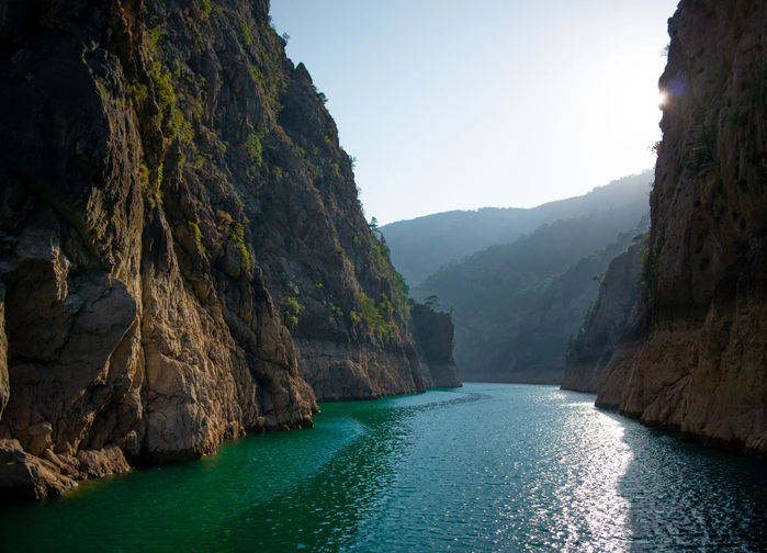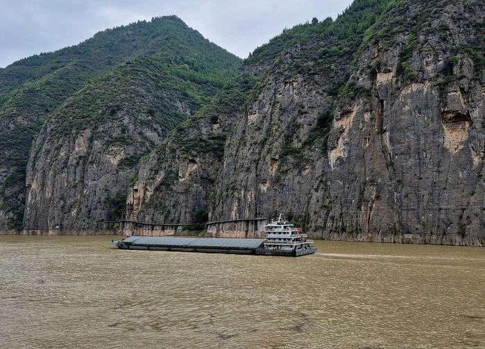 Qutang Ravinen, även om den är den kortaste på bara 8 km, är känd för att vara den mest dramatiska. Den smalaste punkten är bara 152 meter bred, vilket skapar en imponerande och trång passage. Här står de branta klippväggarna nästan vertikalt och omsluter oss med sin majestätiska närvaro, vilket erbjuder en imponerande syn för alla som reser genom.