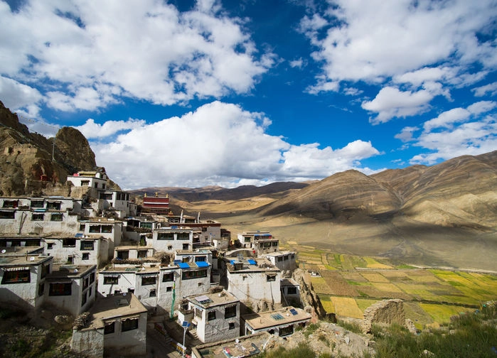 I södra och östra Tibet fungerar Himalaya som en barriär mot monsunvindarna från söder. Detta gör Tibet regnfattigt. Vintern är mycket kall medan sommaren och tidig höst är sval och behaglig. I Tibet kan du under en och samma dag få uppleva stark värme i solskenet samt bitande kalla vindar på de övre platåerna och passhöjderna.