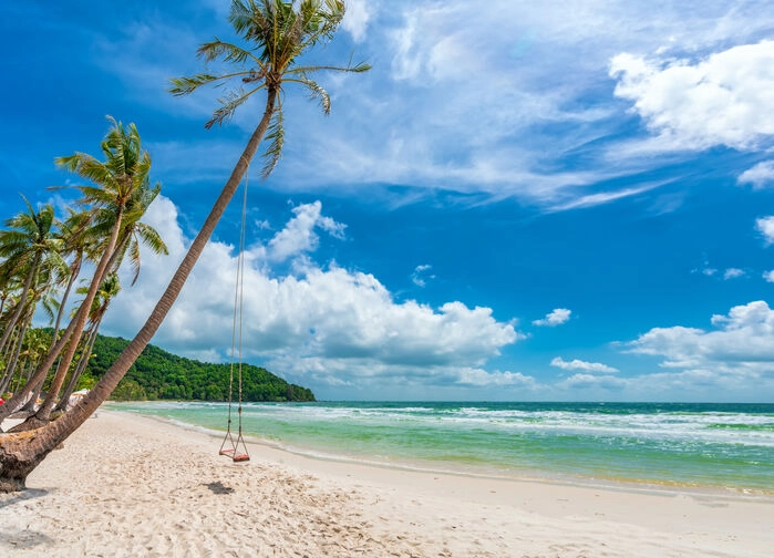Ändå är det naturen som bär berättelsen. Halva ön är nationalpark, och skogen ligger kvar som ett tyst arkiv över tropikernas egen historiebok. Stränderna, vita som gamla pergament, möter ett hav som skiftar mellan turkost och djupblått. Ute vid skärgården slingrar den långa Hon Thom-kabelbanan över vattnet – ett modernt avtryck mot en horisont som i övrigt ser ut att ha stått stilla i hundratals år.
