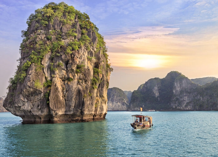 Halongbukten är förmodligen Vietnams och ett av hela Sydostasiens märkligaste och vackraste områden. Naturens poesi i sten och vatten. Buktens spektakulära skärgårdslandskap består av små djupgröna öar som sticker upp likt sockertoppar ur vattnet. Halongbukten är en UNESCO-världsarvsplats och består av mer än 1 600 öar och klippformationer, formade av erosion under miljontals år. Kalkstensklipporna har även grottor som bildats genom vatten- och vinderosion. Vi kommer tätt inpå höga kalkstensklippor som stupar brant ner i vattnet.