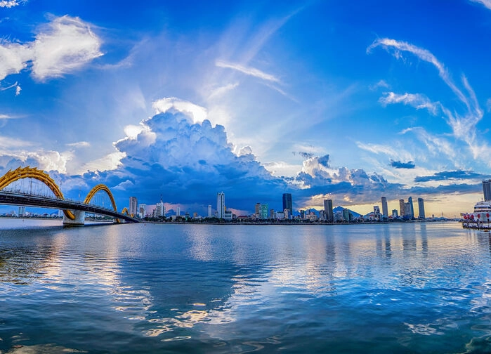 För den som vill går det att följa med på en kvällsutflykt till några av stadens mest välkända platser. Vi börjar vid Dragon Bridge, en arkitektonisk stolthet som sträcker sig över Han-floden i form av en gyllene drake. Varje helgkväll vaknar den till liv med ljus, eld och vatten – en spektakulär show som lockar både lokalbefolkning och besökare. Draken är inte bara ett konstverk utan bär på symbolik: enligt vietnamesisk tradition står den för kraft, skydd och framgång.