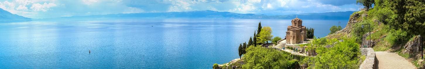 - Ohridsjön med kloster, kyrkor och båtar